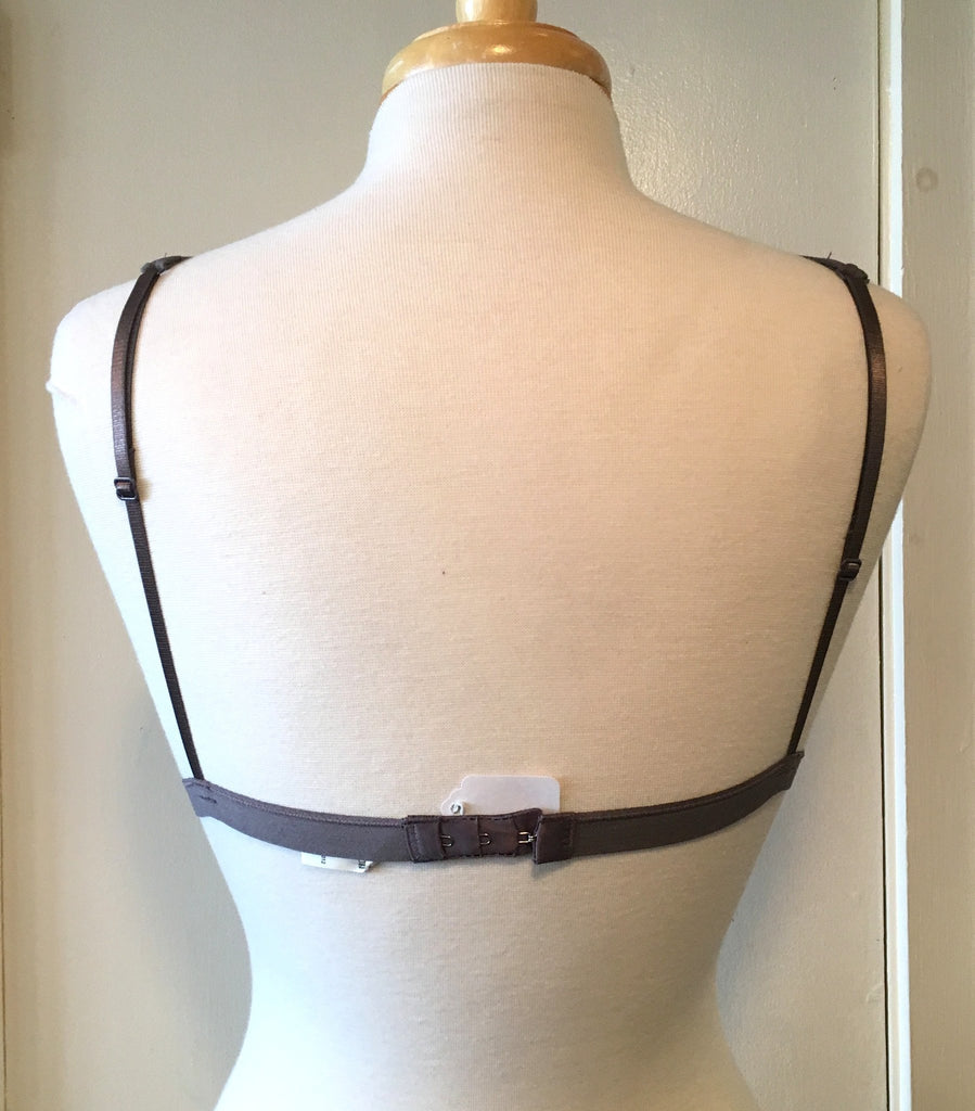 Thin elastic band with hook and eye closure. Adjustable straps. 95% Nylon, 5% Spandex.