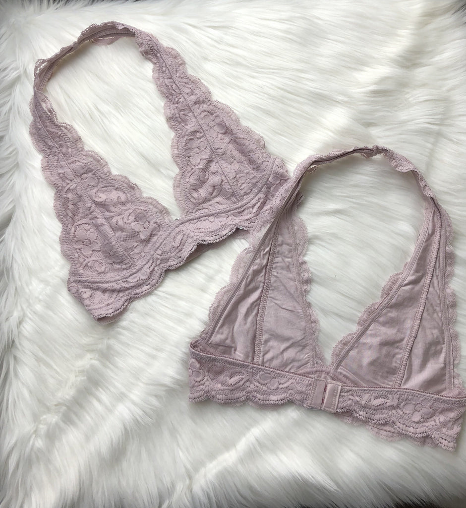 Blush colored lace halter bralette. Adjustable clip on back. Super soft!
