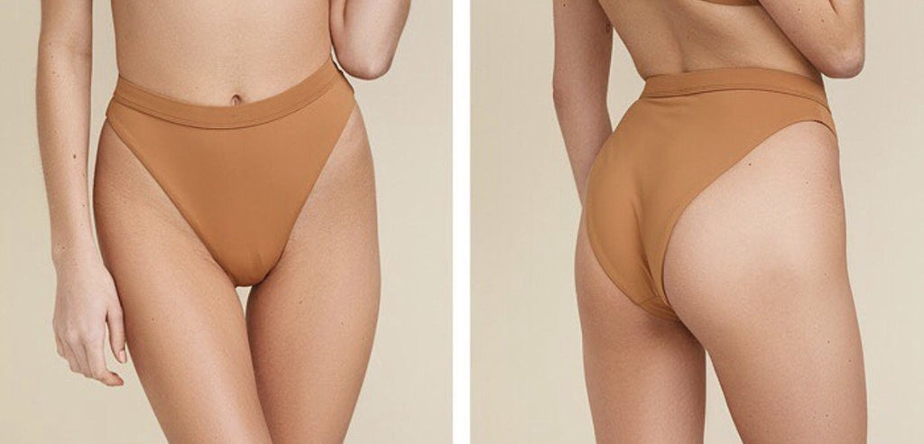 Seemless cheeky high waist banded bottom. High waist and high cut bottom. 80% Nylon, 20% Spandex. #3034br