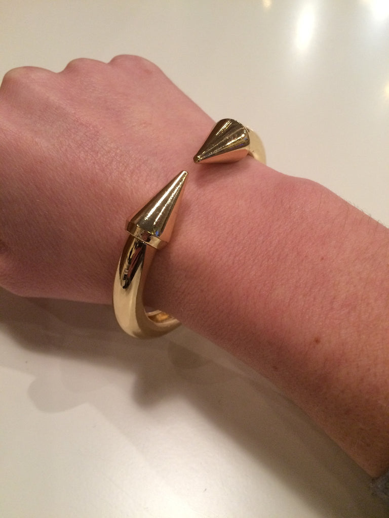 A thick silver bracelet with arrowed tips. On a hinge. Very cool!