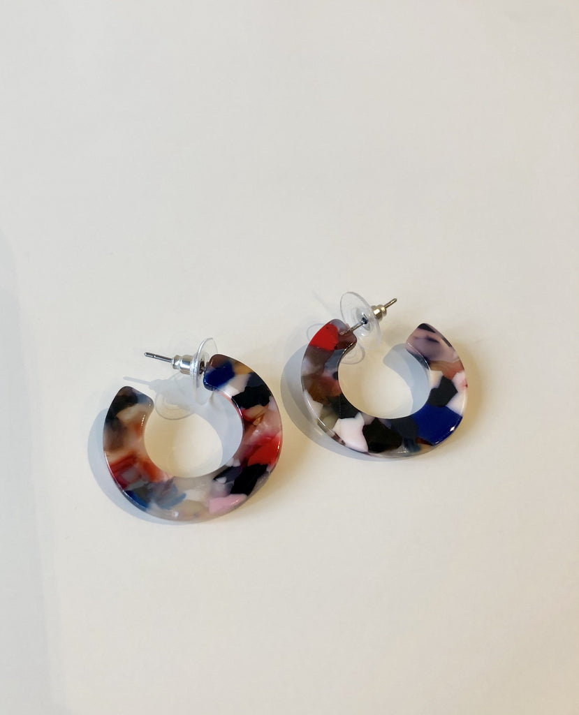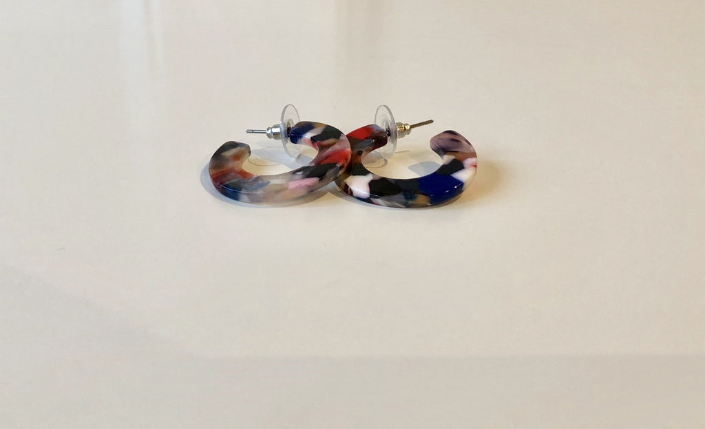 Multi color resin mini hoop earring. 1"H x 1" W