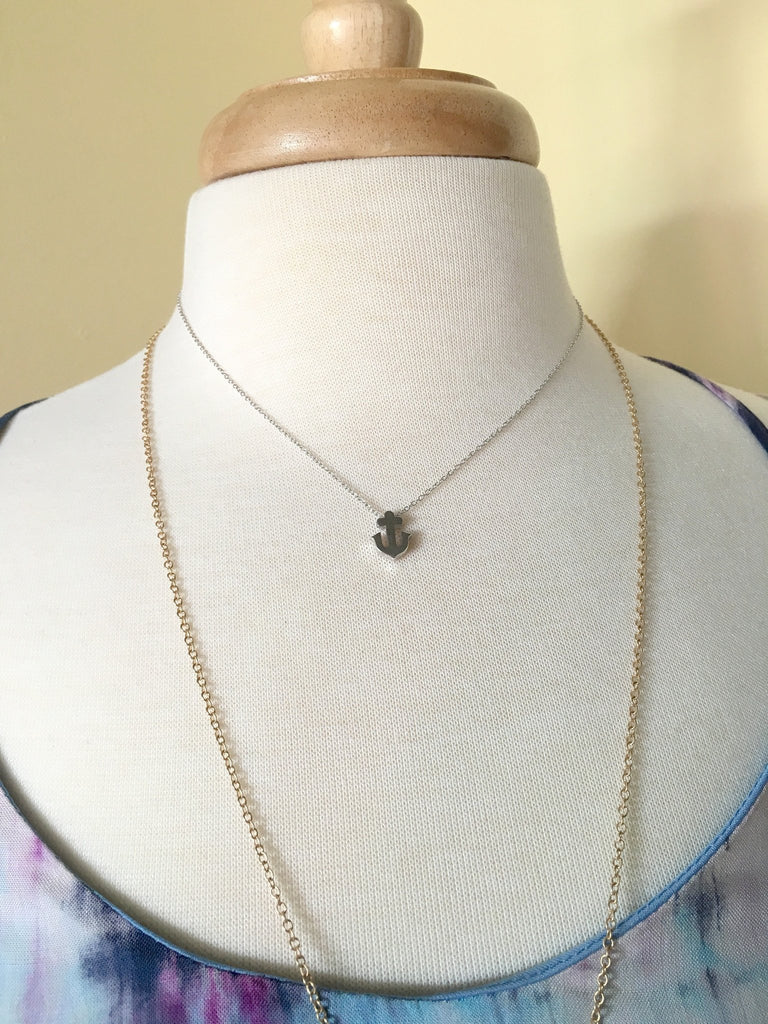 16" long with lobster claw clasp. Anchor is .5 inches long. 1 inch extender.