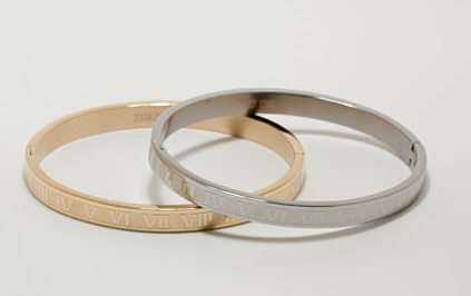 Stainless steel oval roman numeral bangle. Has closure. .25 inches thick.