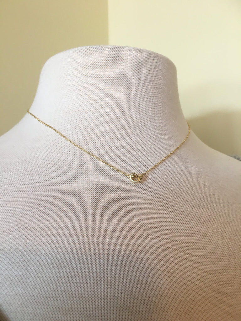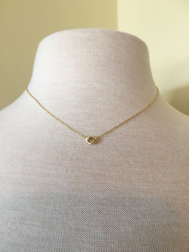 16 inches long. 2 inch extender with lobster claw clasp. Knot is about .25 inch.