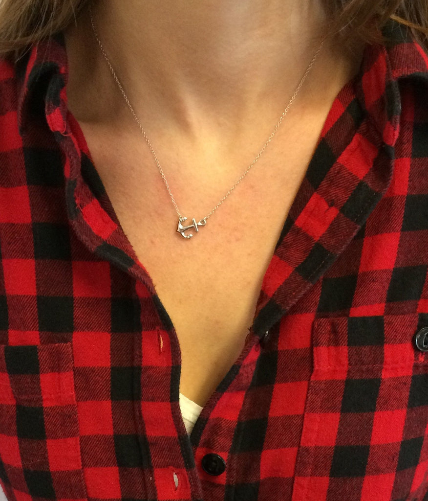 Sideways Sterling Silver Anchor Necklace