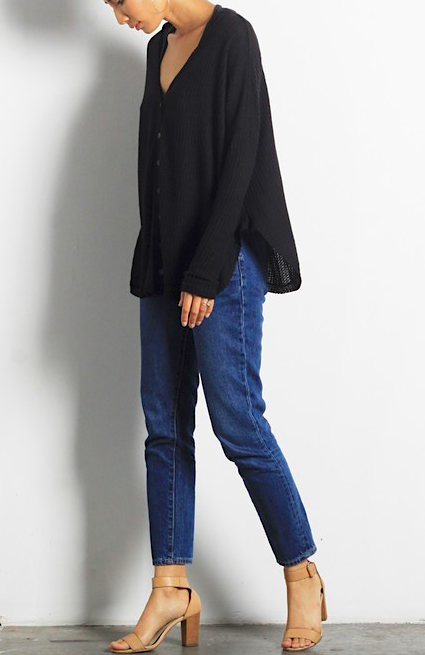 Get ready to want this in every color! Super soft and snuggly button down knitted V neck sweater. Wear it open with a tank underneath or closed as is. 62% Polyester, 34% Cotton, 4% Spandex. #76BL